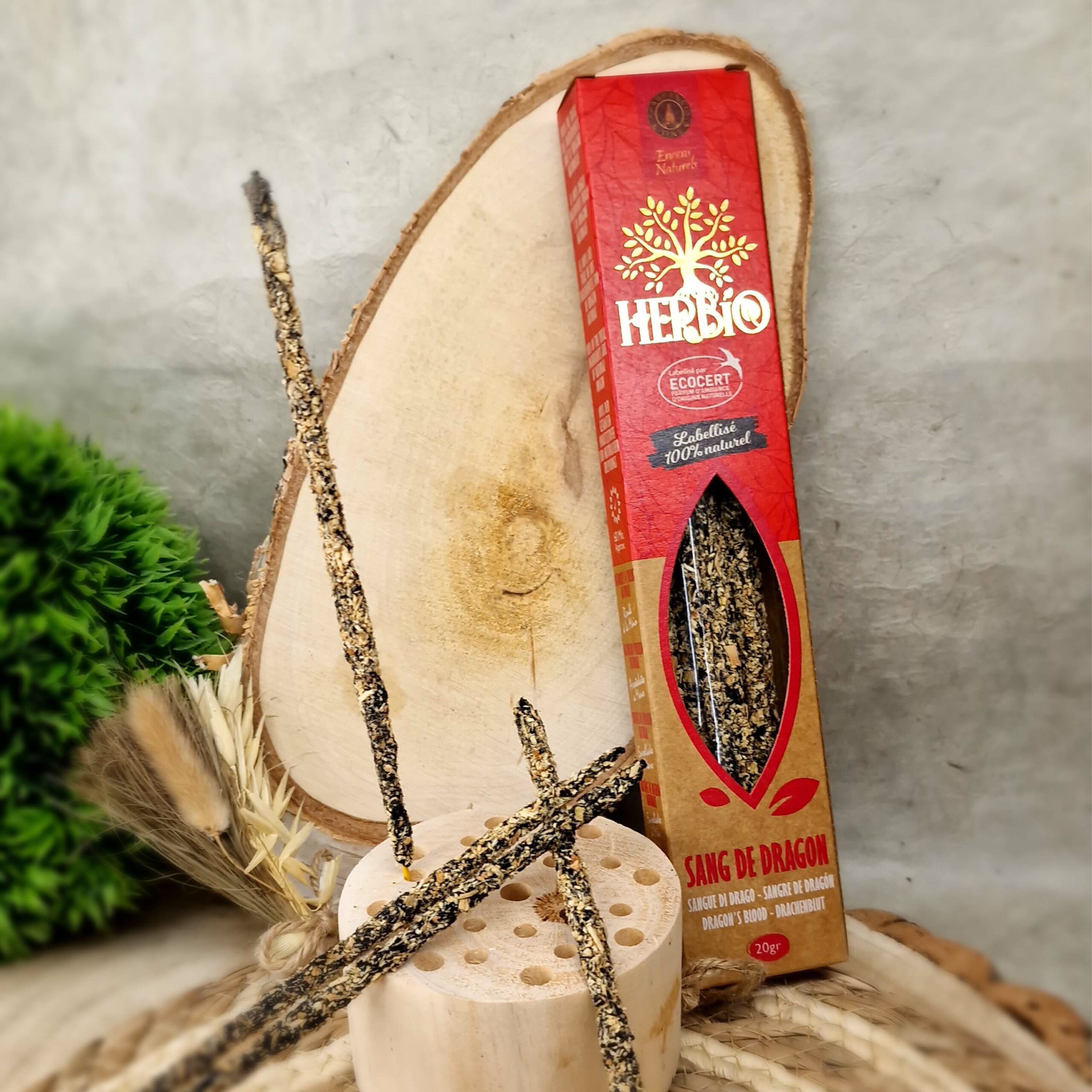 Encens smudge Herbio Sang de Dragon 100 % naturel, certifié Écocert. Purifie, protège et élève vos énergies. Idéal pour les rituels et la méditation.