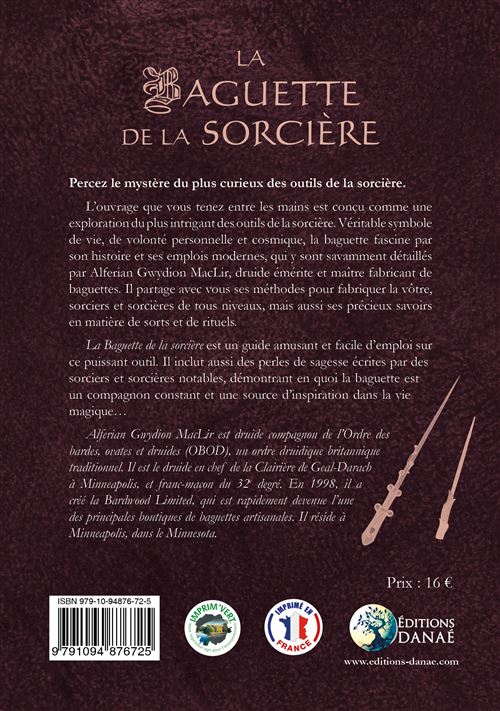 Percez le mystère du plus curieux des outils de la sorcière. L'ouvrage que vous tenez entre les mains est conçu comme une exploration du plus intrigant des outils de la sorcière. Véritable symbole de vie, de volonté personnelle et cosmique, la baguette fascine par son histoire et ses emplois modernes, qui y sont savamment détaillés par Alferian Gwydion MacLir, druide émérite et maître fabricant de baguettes. Il partage avec vous ses méthodes pour fabriquer la vôtre, sorciers et sorcières de tous niveaux, mais aussi ses précieux savoirs en matière de sorts et de rituels. La Baguette de la sorcière est un guide amusant et facile d'emploi sur ce puissant outil. Il inclut aussi des perles de sagesse écrites par des sorciers et sorcières notables, démontrant en quoi la baguette est un compagnon constant et une source d'inspiration dans la vie magique… Alferian Gwydion MacLir est druide compagnon de l'Ordre des bardes, ovates et druides (OBOD), un ordre druidique britannique traditionnel. Il est le druide en chef de la Clairière de Geal-Darach à Minneapolis, et franc-maçon du 32e degré. En 1998, il a créé la Bardwood Limited, qui est rapidement devenue l'une des principales boutiques de baguettes artisanales. Il réside à Minneapolis, dans le Minnesota.