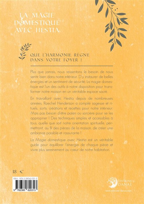 En travaillant avec Hestia depuis de nombreuses années, Raechel Henderson a compilé sagesse et rituels, sorts, créations et recettes pour notre intérieur. Mais pas besoin d’être païen ou sorcière pour se les approprier ! Des techniques simples et accessibles à tous, quelle que soit notre orientation spirituelle, permettront, au fil des pièces de la maison, de créer une ambiance paisible et rassurante !