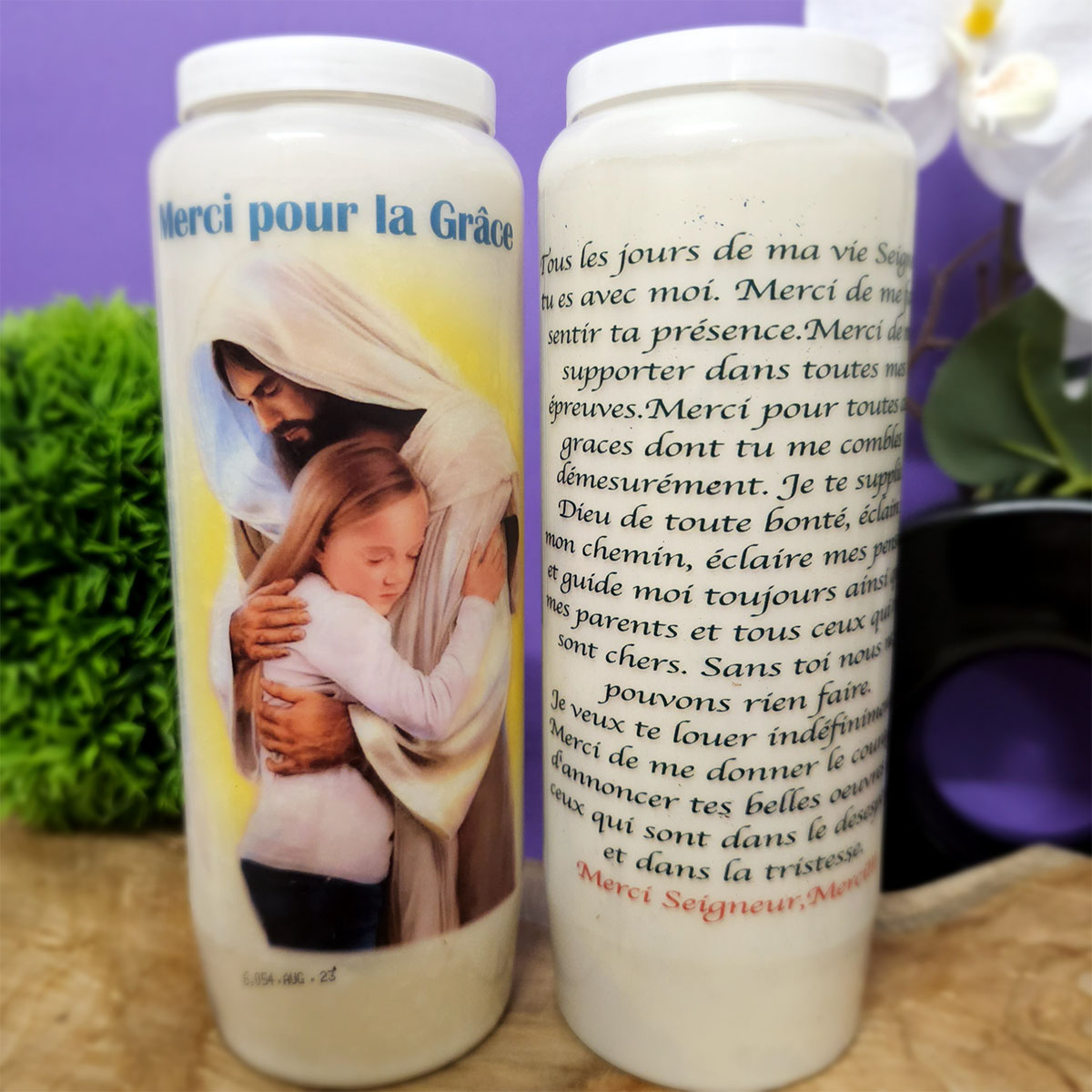 Bougie neuvaine végétale avec image et prière au dos