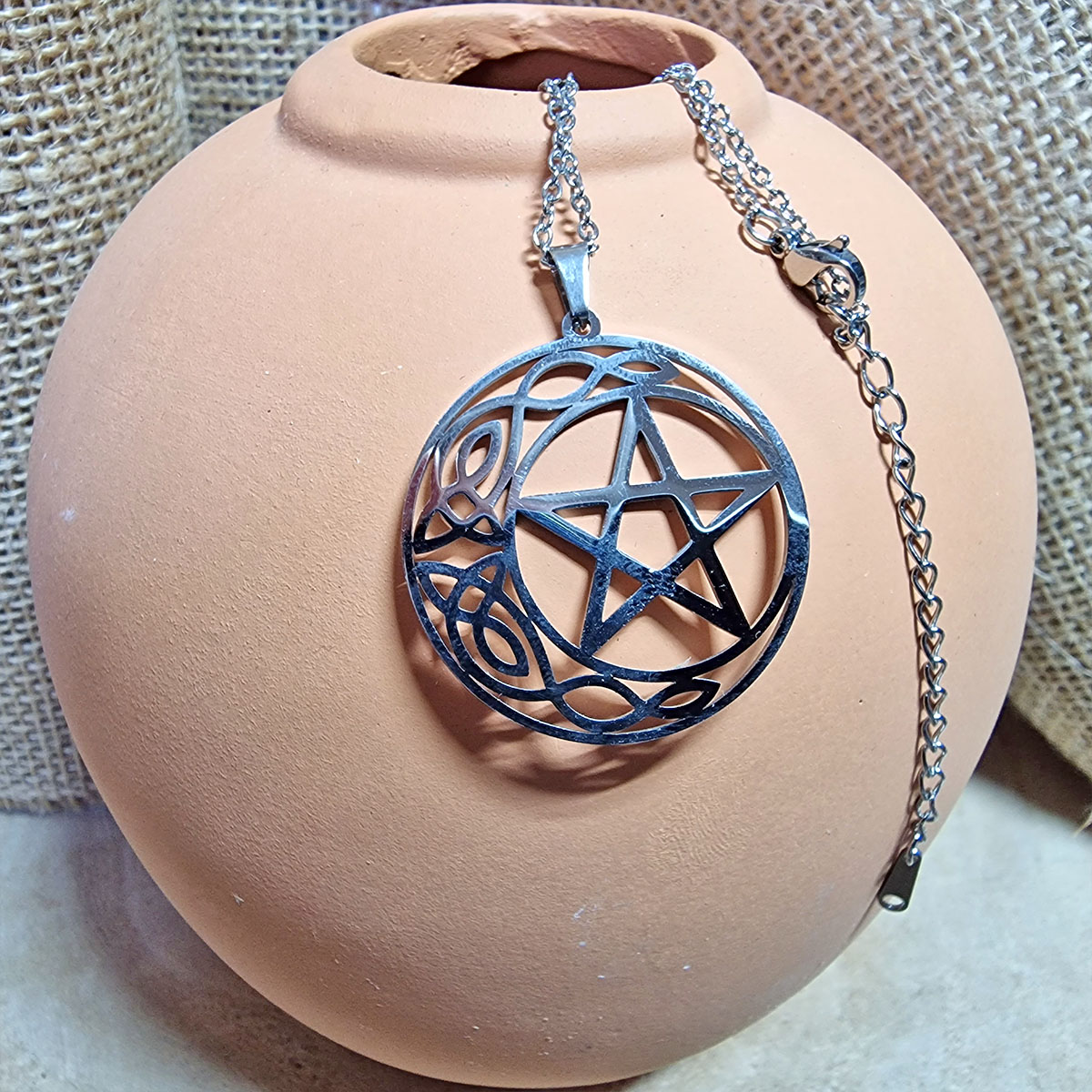 Collier avec un pendentif représentant un pentacle cerné d'un croissant de lune. (modèle 1)