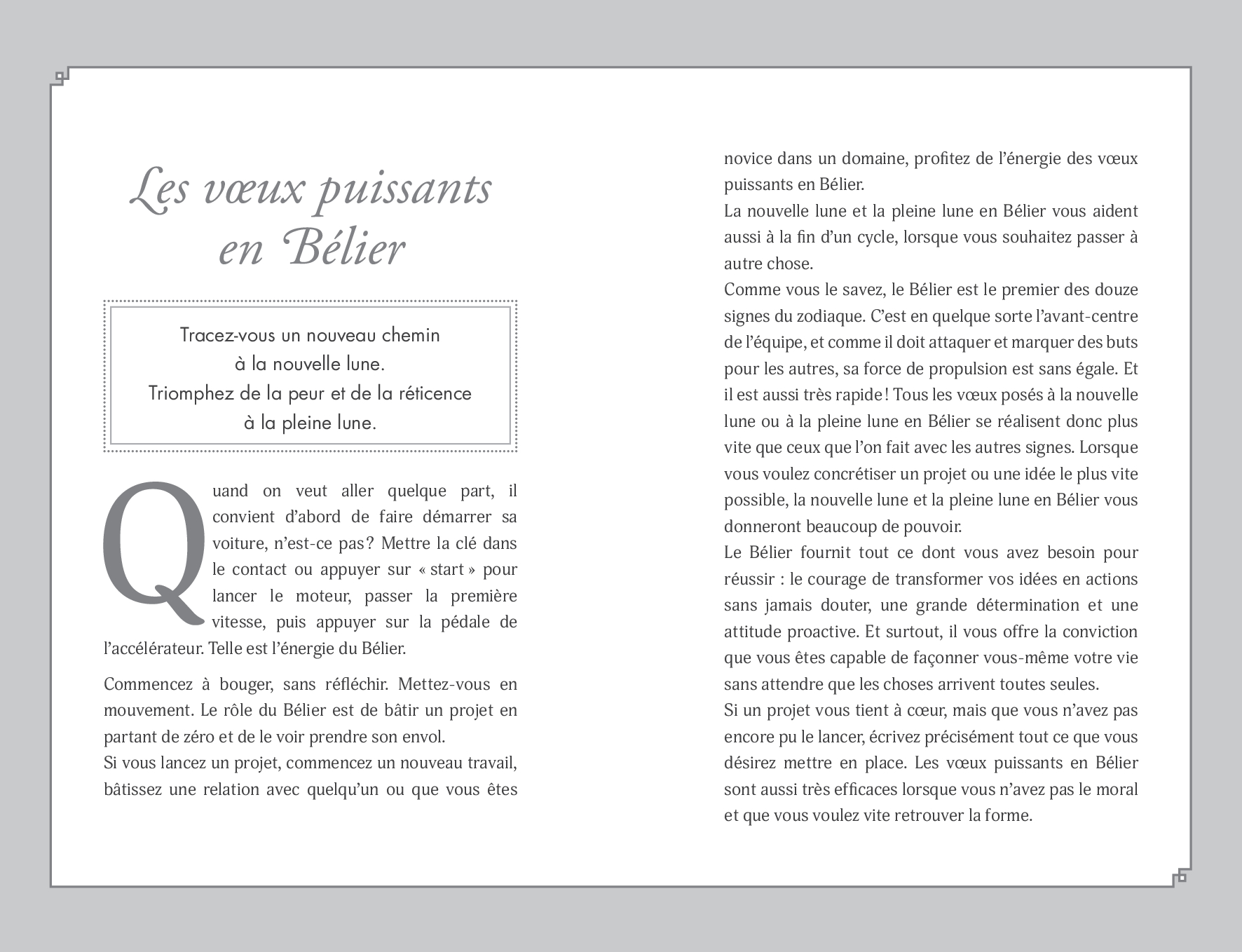 Tout au long de l’année, selon la conguration astrale, pleines et nouvelles lunes émettent une énergie bien particulière. Grâce aux conseils pratiques de Keiko, apprenez à formuler précisément vos souhaits en utilisant des mots de haute vibration et l’énergie des 12 signes du zodiaque : vitesse