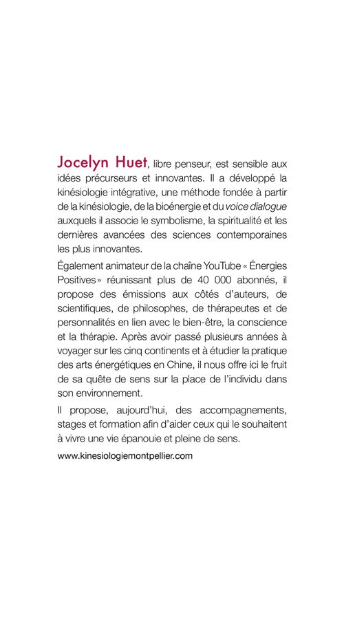 Le monde extérieur serait-il le reflet de nos mondes intérieurs ? La réalité que nous vivons serait-elle soumise à des influences ? Existerait-il un pouvoir créateur avec lequel nous pourrions œuvrer ? Autant de questions auxquelles Jocelyn Huet répond avec ce guide aussi pratique que spirituel, avec en tête un mantra : " Se dire je me connais, c'est se baser sur son passé, se dire je me découvre, c'est s'ouvrir à de nouvelles potentialités. " Inspiré par ses nombreux voyages, recherches et expériences personnelles, l'auteur s'intéresse à la façon dont nous pouvons vivre une vie chargée de sens, alignée à nos valeurs profondes.